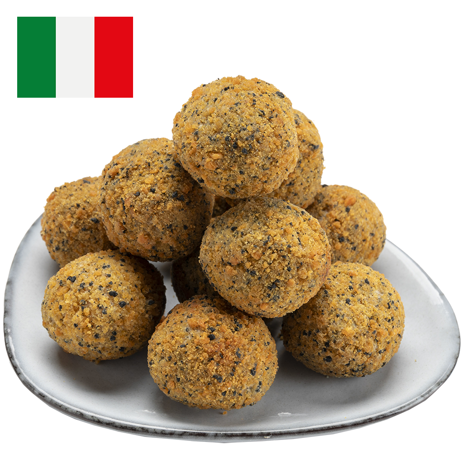 Läckra panerade bollar av mozzarella smaksatt med riven tryffel. De är dessutom panerade i speciellt svart ströbröd. Ett lyxigare alternativ till vanliga mozzarellasticks. Utmärkta till aperitif eller som snacks.