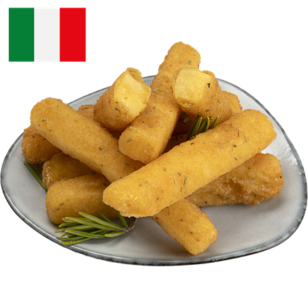 Traditionell polenta på majsmjöl och vatten, men i en modern version. Skuren i sticks och panerad i en panering smaksatt med aromatisk rosmarin. Utmärkta till aperitif, som snacks, till förrätt eller som tillbehör till en annan rätt.