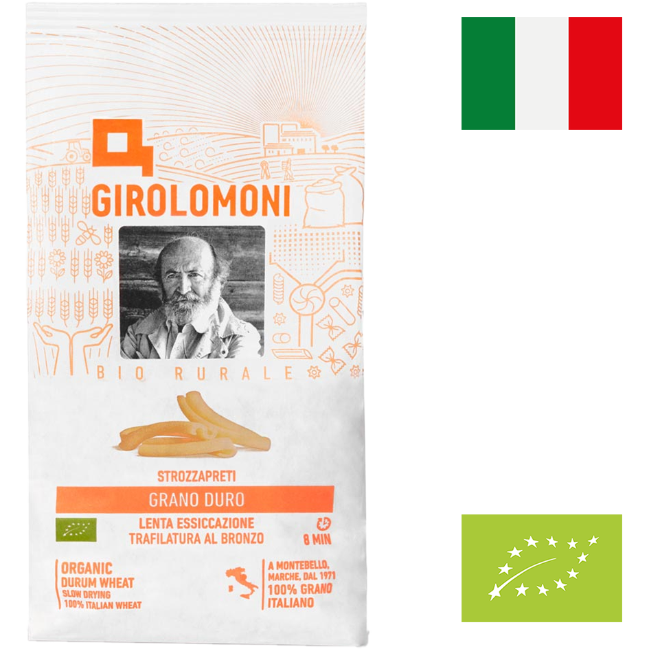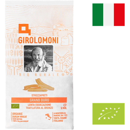 Girolomoni tillverkar sin pasta på ekologiskt durumvete, som odlas i Italien med särskild omsorg och kan spåras hela vägen från fält till pastapaket. De maler själva mjölet och använder rent källvatten från kullarna runt Montebello, och pastan formas med bronsredskap. Resultatet är en porös pasta med matt yta, som tar upp såsen på ett optimalt sätt.