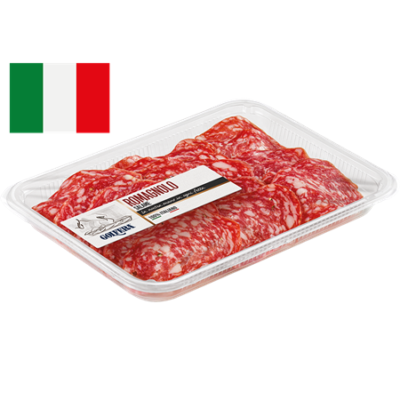 Klassisk rustik bondkorv från regionen Romagna, känd för sina charkuterier. En relativt mjuk korv med söt och aromatisk smak, som tillverkas uteslutande på italienskt fläskkött.