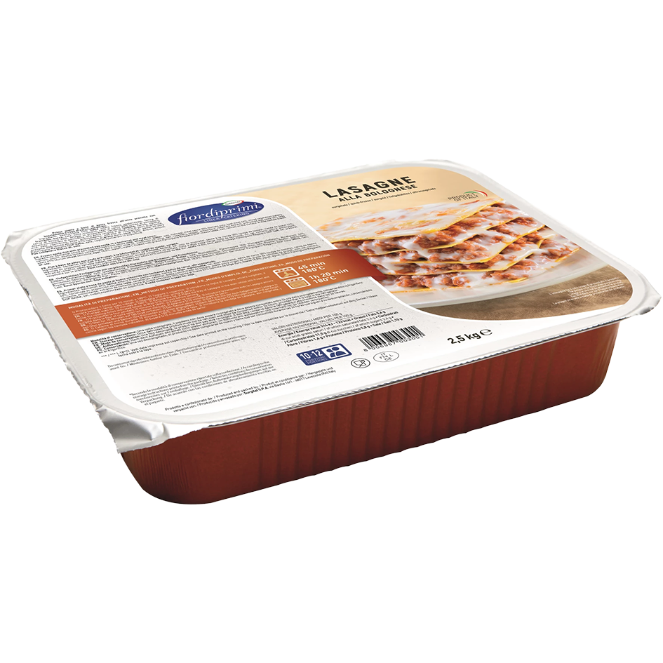 Fryst lasagne till ca 10-12 portioner, fylld med krämig béchamelsås samt bolognesesås tillverkad på endast nötkött. Baka enkelt i varmluftsugn 180°C i ca 45 minuter.
